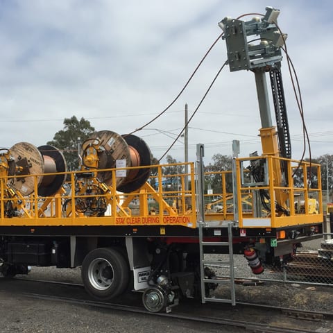 This unit is ideal for all facets of overhead works. Capable of wire feed out at tension or wire recovery system back onto drums.